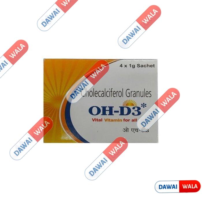 OH D3 Sachet is a vitamin D3 supplement which is primarily used to manage vitamin D3 deficiency. Vitamin D3 is essential for the growth, formation, and maintenance of healthy bones. Lack of this essential vitamin may cause several bone-related problems. Vitamin D3 is also required for numerous bodily processes, like calcium absorption. It is needed to keep the bones strong and manage any conditions associated with weak and brittle bones.