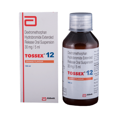 Tossex 12 Oral Suspension Orange is an antitussive (cough suppressants). It suppresses cough by reducing the activity of cough centre in the brain.