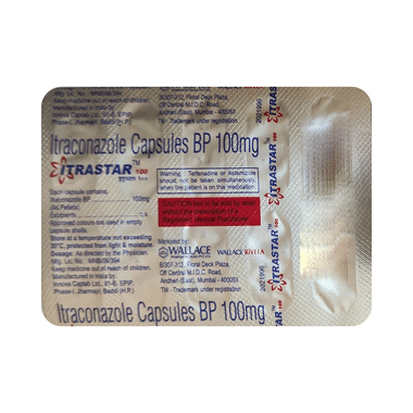 Itrastar 100mg Capsule should be taken in the dose and duration as prescribed by your doctor. It should be swallowed whole and can be taken with food. To get the most benefit, take this medicine at evenly spaced times and continue using it until your prescription is finished, even if your symptoms disappear after a few days. If you stop the treatment too early, the infection may return and if you miss doses you can increase your risk of infections that are resistant to further treatment. Tell your doctor if the infection does not get better or if it gets worse.The most common side effects of this medicine include nausea, dizziness, headache, vomiting, diarrhea, abdominal pain, constipation, and dyspepsia. You could ask your doctor about ways of preventing or reducing these effects. Get emergency medical help if you have signs of an allergic reaction like severe skin rash, tingling, difficulty breathing, swelling of your face, lips, tongue, or throat. Do not take it if you are pregnant or could become pregnant unless your doctor has told you to. Talk to your doctor before taking this medicine if you have a history of heart failure, a weak immune system (including HIV/AIDS), kidney problems, or liver problems such as yellow skin (jaundice). This medicine may not be suitable for you. If your course of treatment is for more than a month, your doctor may want to check your liver by testing your blood.