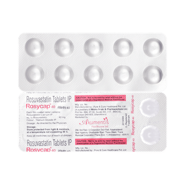 Rosycap 40 Tablet is a lipid-lowering medication (statin). It works by blocking an enzyme (HMG-CoA-reductase) that is required in the body to make cholesterol. It thus lowers "bad" cholesterol (LDL), triglycerides and raises "good" cholesterol (HDL).